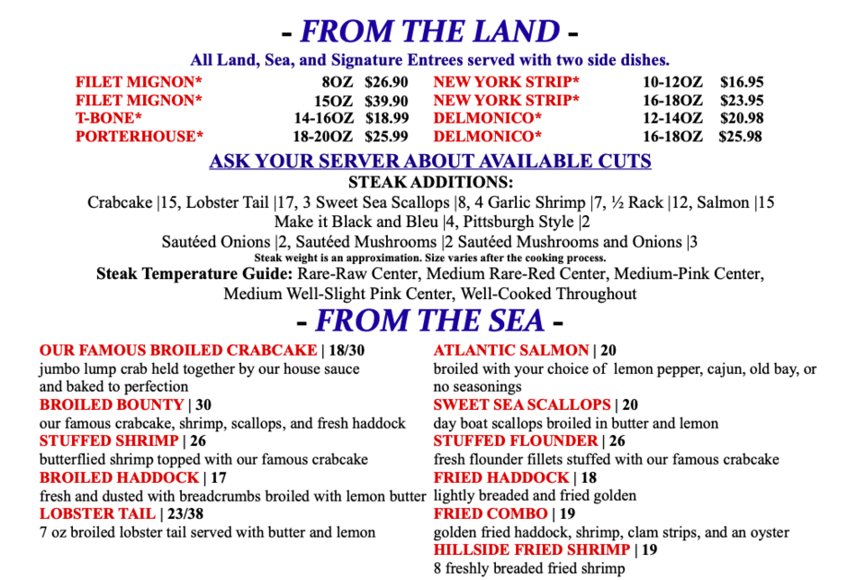 hillside fish house menu